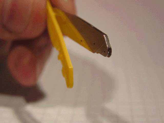 Die vorherige Variante hat einen großen Nachteil. Die Schaufel würde beim auf und ab des Armes nicht gerade bleiben. Also doch eine Seilwinde draus gemächt und es wird über nur eine Umlenkrolle von vorne an dem "Hydraulikzylinder" gezerrt. 150 bis 160 mA Stromaufnahme und wenn die Feder komplett zusammengedrückt ist bewegen sich die Klemmen auf einander zu ohne mehr Strom zu ziehen.