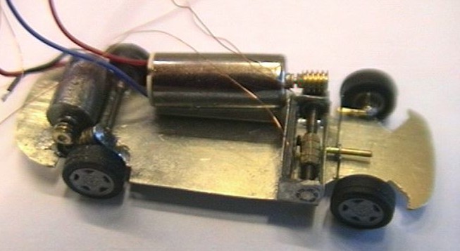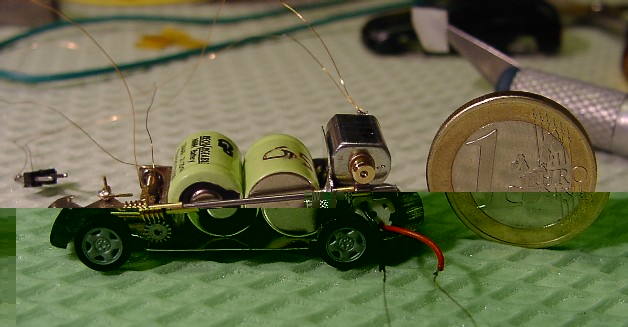 Das Fahrgetriebe besitzt einen 6x10 mm Motor und passt gerade noch zwischen die Räder.